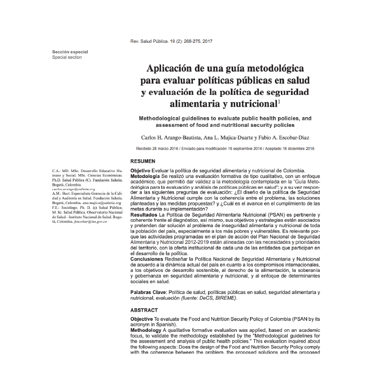 Evaluación de los efectos directos de la ampliación de la respuesta del VIH con enfoque de vulnerabilidad Resultados de la Encuesta de Riesgo Cardiovascular – Erica Risaralda Herramienta de construcción de evidencia y conocimiento para los negociadores del mercado de servicios de salud colombiano (IPS y EPS) Fortalecer la planificación y orientación de nuestras acciones de política pública sobre la calidad de la atención de los servicios de salud. Sistema de gestión del riesgo de las empresas sociales del Estado (ESE) Gestión del programa de enfermedades transmitidas por vectores (ETV) en el departamento El impuesto al tabaco resultó mejor de lo esperado. La familia sí se beneficia del impuesto al tabaco Impuesto al tabaco sí genera desarrollo social. El tabaco no se desliga de la pobreza El proyecto SIMUDAT SALUD RISARALDA constituye un esfuerzo único y singular originado en un territorio del nivel subnacional del Gobierno Innovando en Salud Innovando en Salud Innovando en Salud Innovando en Salud Aplicación de una guía metodológica para evaluar políticas publicas en salud Evaluación de Plan Decenal de Lactancia Materna Resumen de Resultados de la Evaluación de Medio Término del Proyecto Malaria Colombia Familias en la jugada Plan Decenal de Lactancia Materna y Alimentación Complementaria Valoración de efectos y análisis institucional Plan Decenal de Lactancia Materna Herramienta de construcción de evidencia y conocimiento para los negociadores del mercado de servicios de salud colombiano (IPS y EPS) Plan Decenal de Lactancia Materna y Alimentación Complementaria